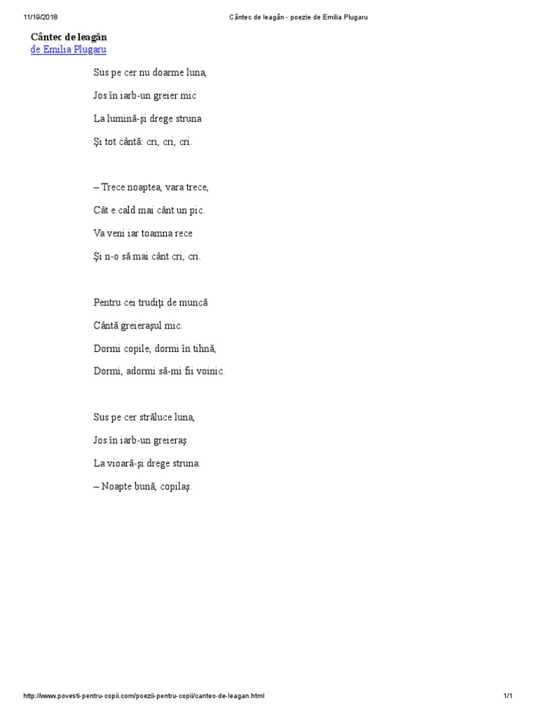 Cantec De Leagăn Poezie De Emilia Plugaru