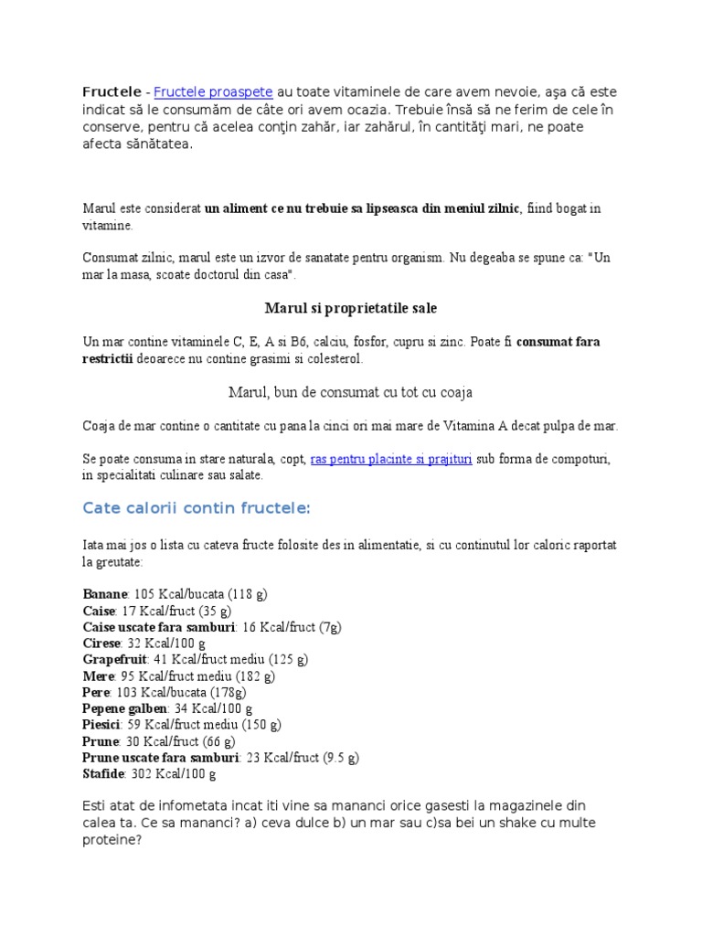 Ce Fructe Mancam Si Cate Calorii Contin