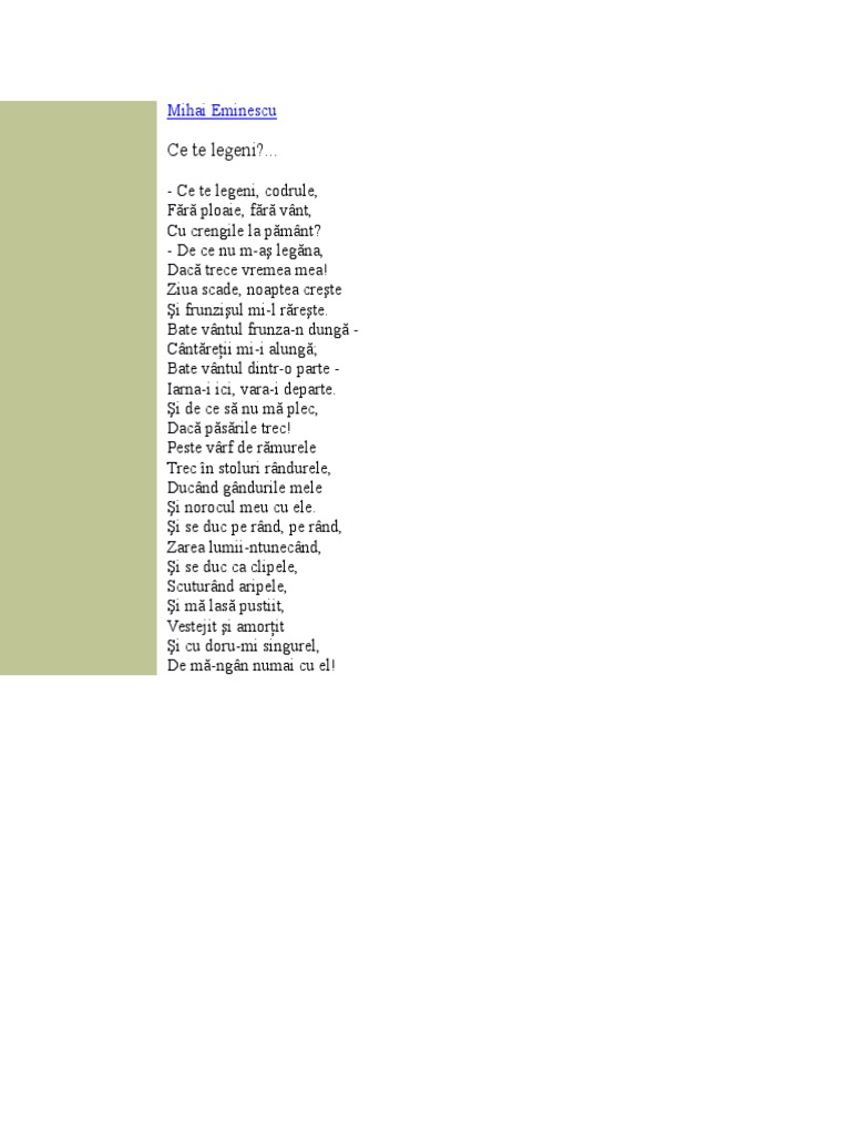 Poezii De Eminescu Ce Te Legeni Wattpad
