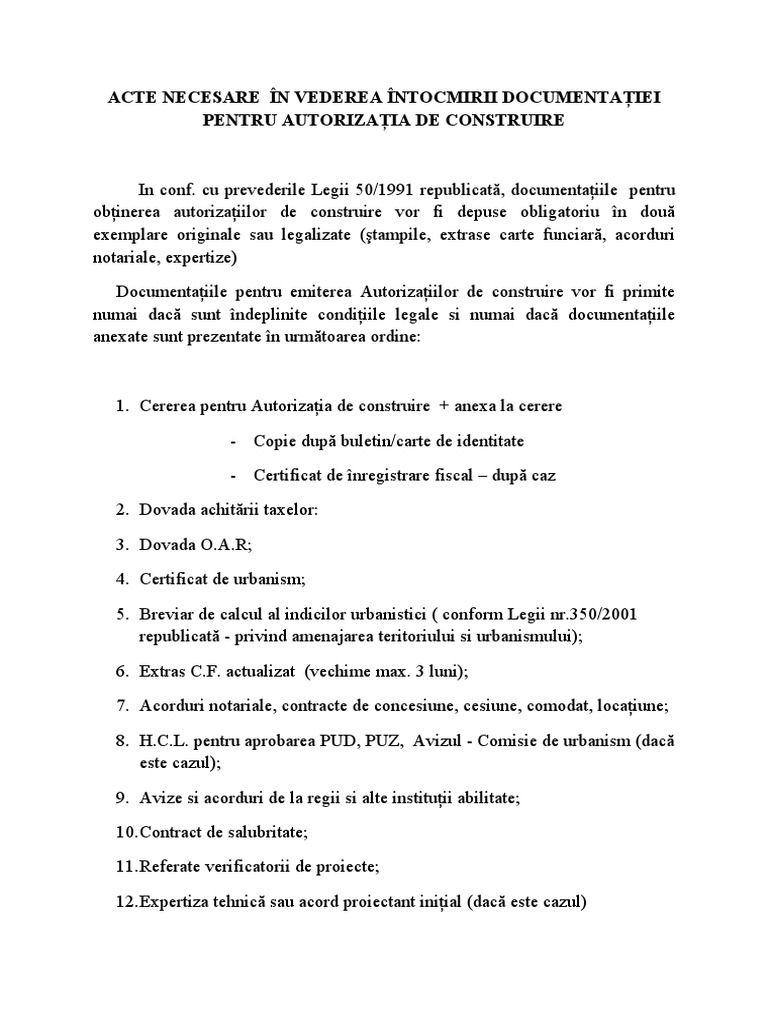 Acte Necesare In Vederea Intocmirii Documentaţiei Pentru Autorizaţia De Construire