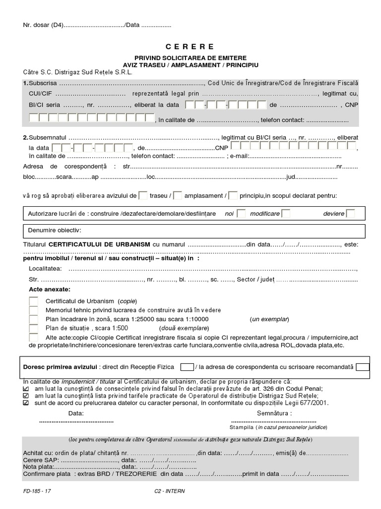 Documente Instalatie Noua Separare Modificare Renominalizare Instalatie Gaze