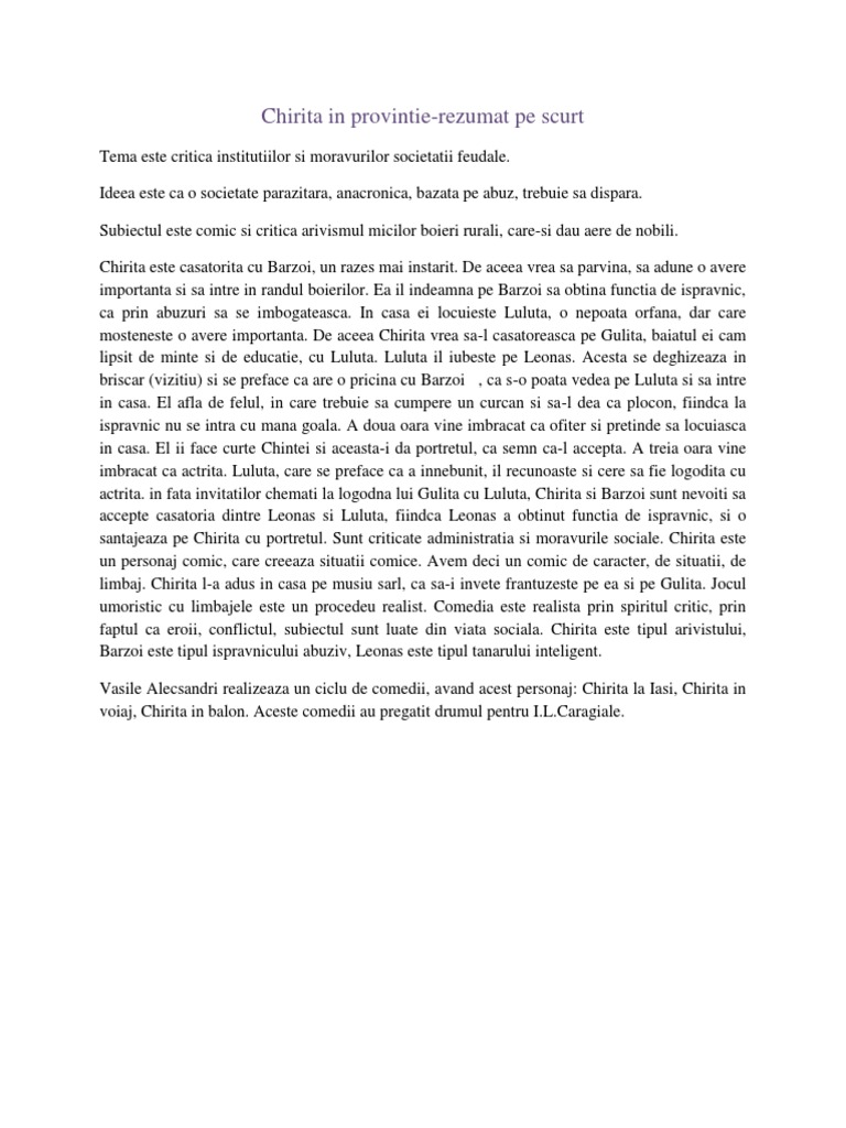 Chirita In Provintie Dem Docx Pdf Document