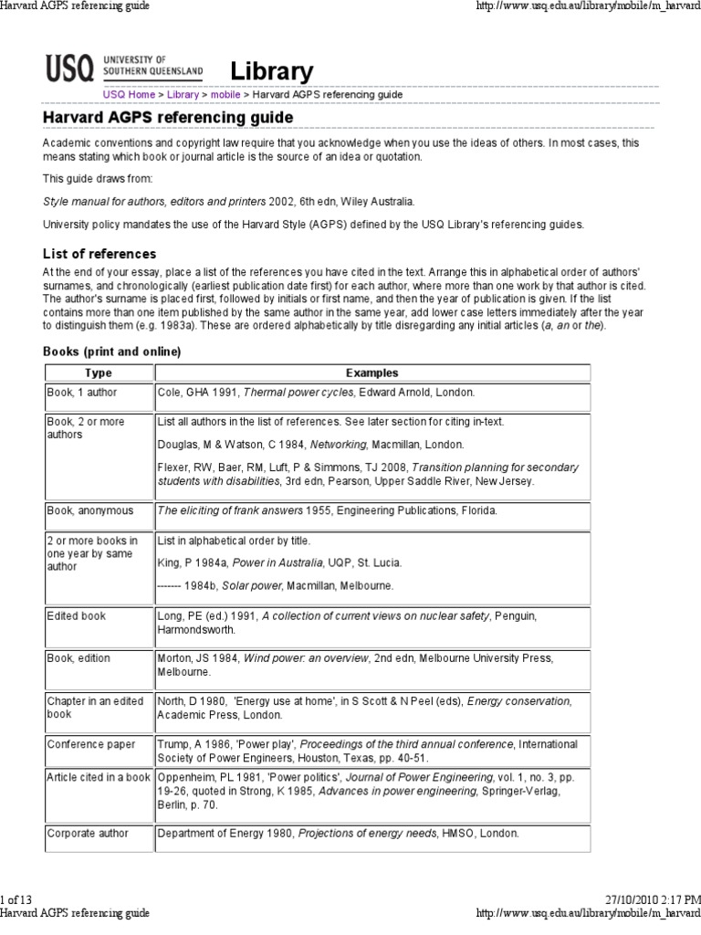 Harvard Agps Referencing Guide Mobile Citation Web Page