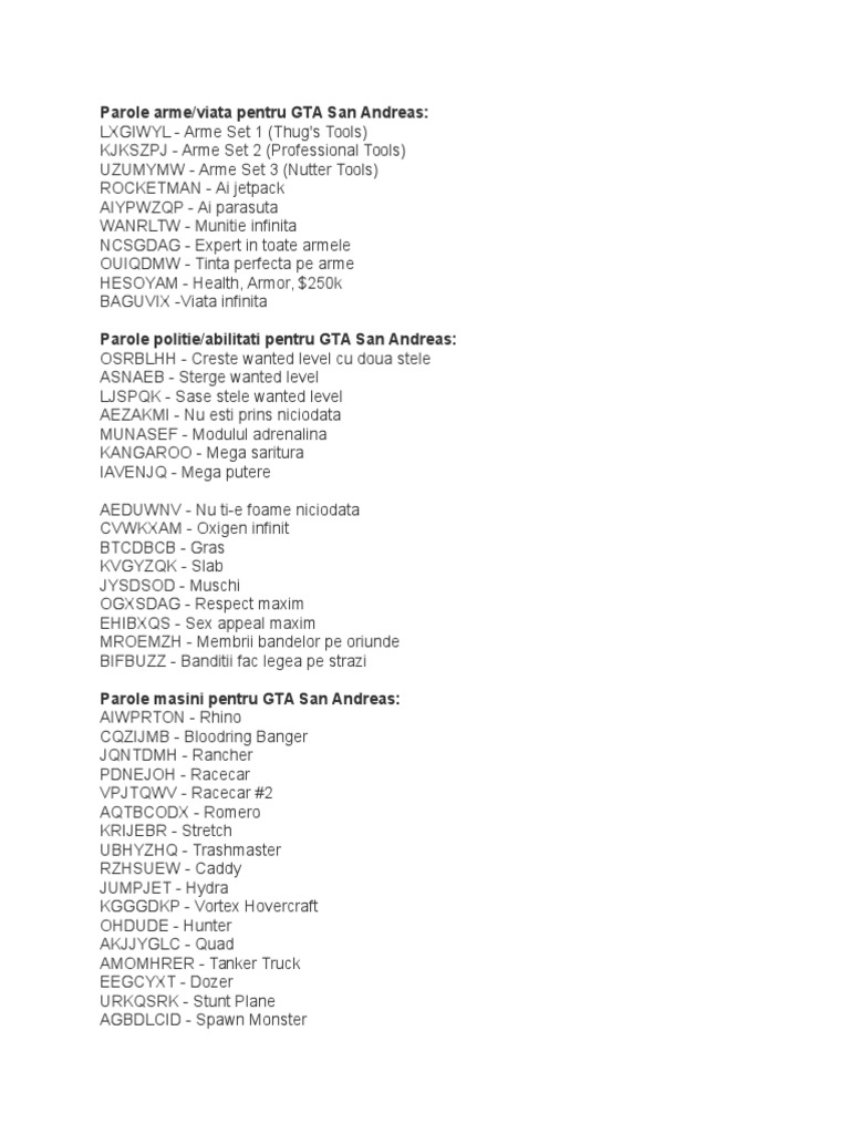 Parole Gta San Andreas Lista Completa A Codurilor Gta