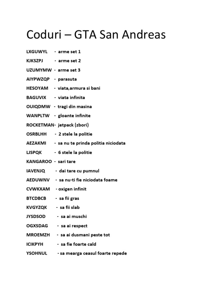 Parole Coduri Gta San Andreas Cum Sa Ai Arme Viata Masini Si Armura Student Pe Net Portal Studentesc De Socializare