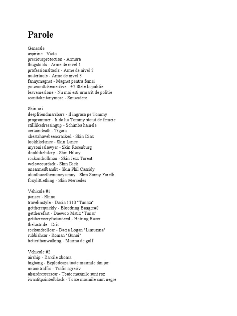 Coduri gta vice city bani infiniti. Primesti toate armele usoare thugstools. Vice city este al saselea titlu din seria de succes gta si ramane un titlu foarte popular atat pentru cei ce au luat de curand contact cu seria cei ce au pc uri mai putin pretentioase dar si pentru fani asadar astazi v am pregatit lista de coduri gta vice city pentru pc. Coduri gta vice city lista coduri pentru gta vice city. Coduri gta vice city intreaga listă de coduri.