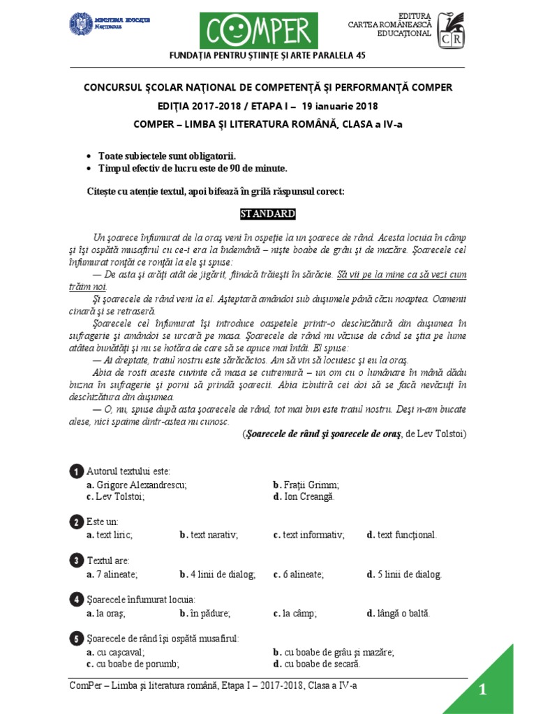 Https Concursurilecomper Ro Sites Default Files Arhivasubiecte Subiect Comper Limba 20romana Etapai 2017 2018 Clasaiv Pdf