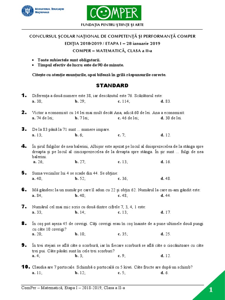 Subiecte Matematică Comper 2019 Anunţ Important Pentru Elevi Părinţi Si Profesori Bareme Comper Matematică Etapa I Romaniatv Net Mobi