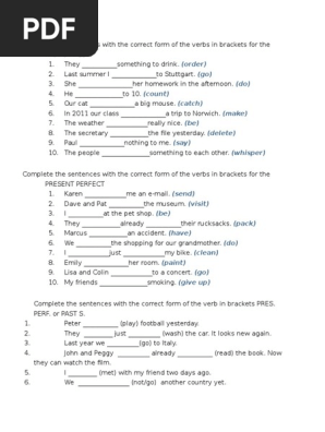 A Complete The Sentences With The Verbs Below In The Correct Form 10x1 Pdf Free Download