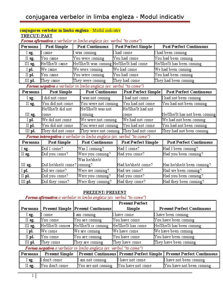 Conjugarea Verbelor In Engleza