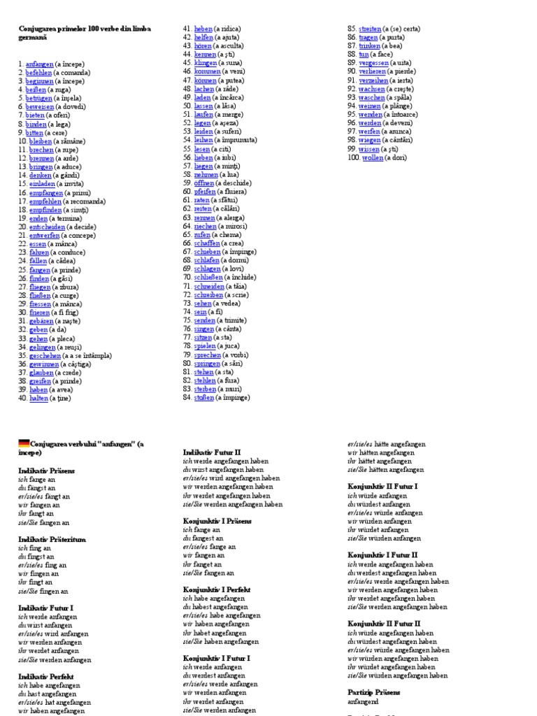 Conjugarea Primelor 100 Verbe Din Limba Germană
