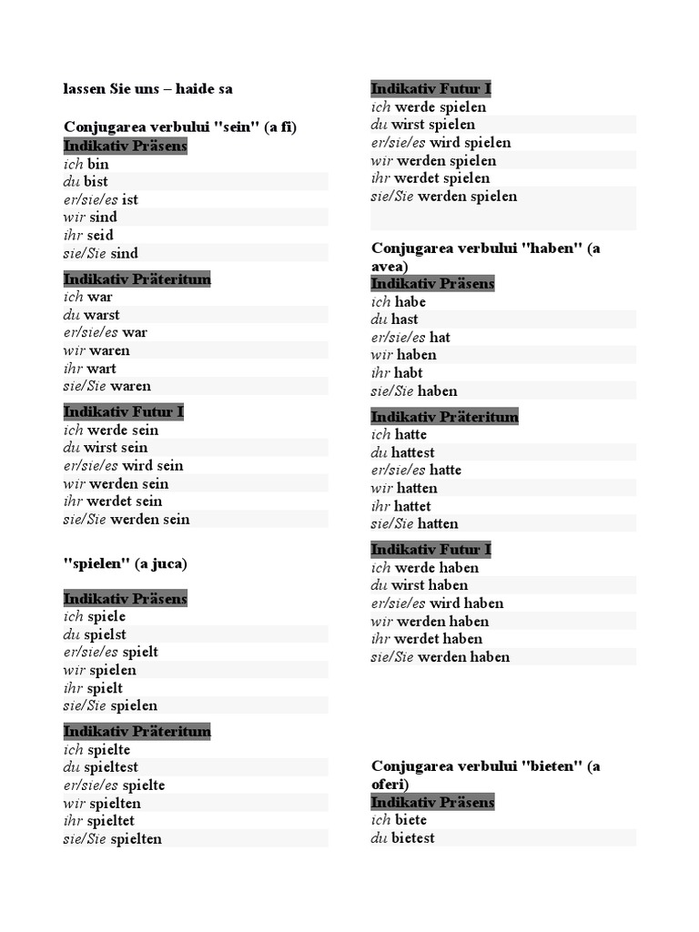 Conjugarea Primelor 100 Verbe Din Limba Germană
