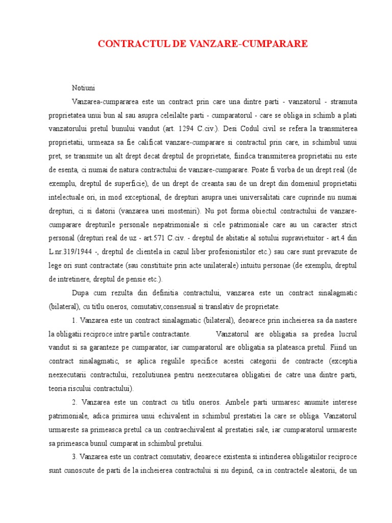 Contractul De Vanzare Cumparare Conspecte Md