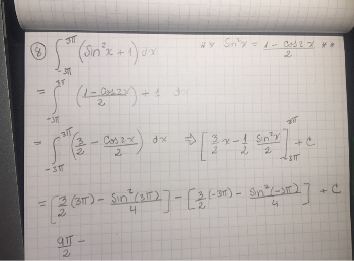 Solved Integral 3pi 3 Pi Sin 2 X 1 Dx Integral 3pi 3 Chegg Com
