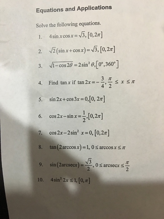 Solved Solve The Following Equations 4sin X Cos X Squa Chegg Com