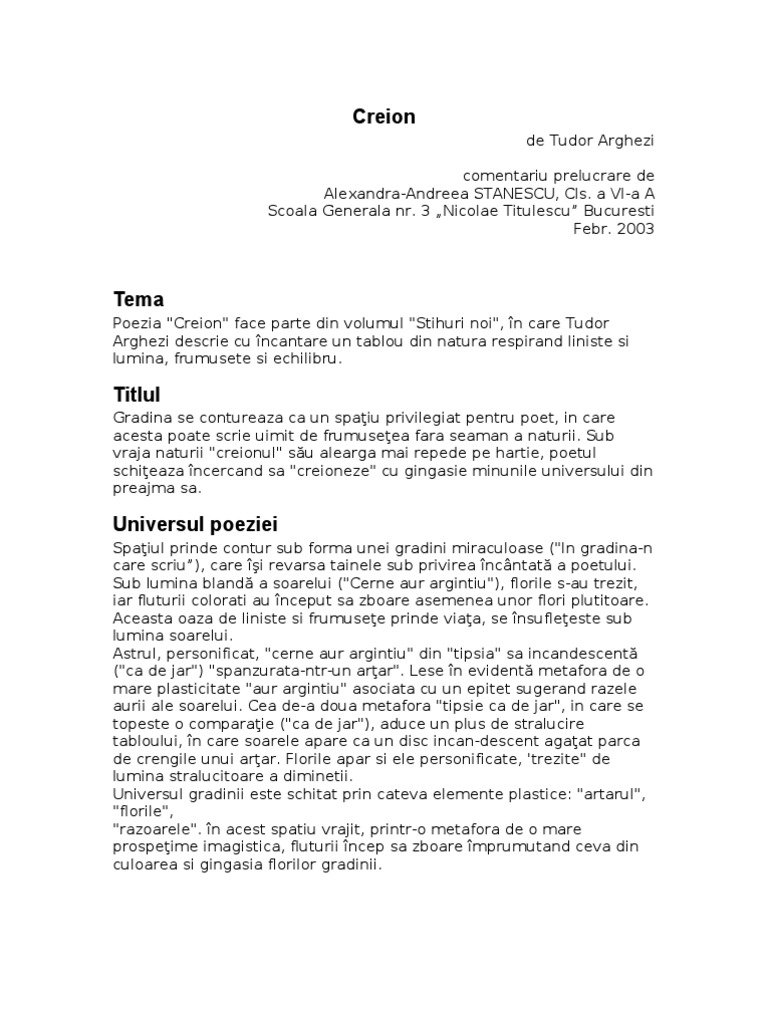 Doc Creion De Tudor Arghezi Bivolaru Elena Cristina Academia Edu