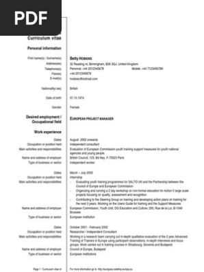 Europass Template Of Curriculum Vitae Word