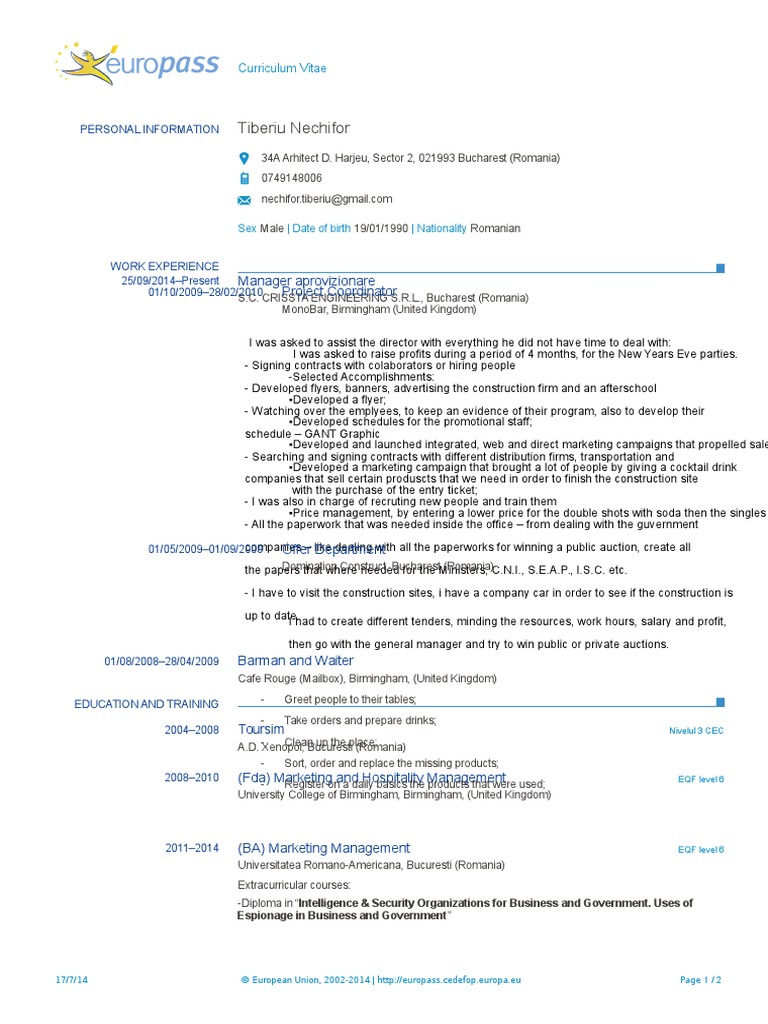Model Cv Europass Romania Communication