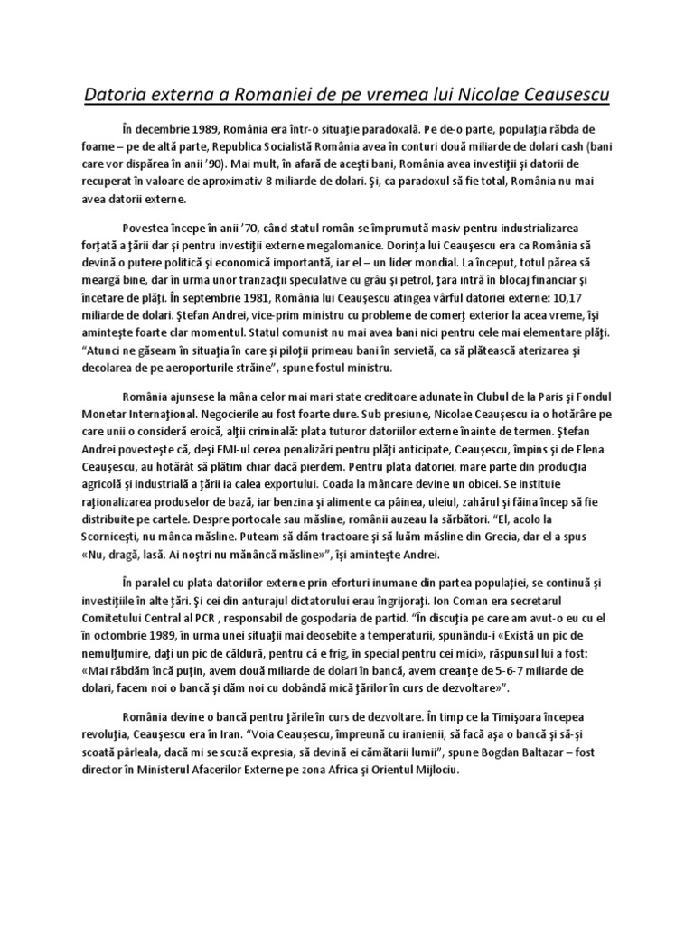 Datoria Externa A Romaniei De Pe Vremea Lui Nicolae Ceausescu