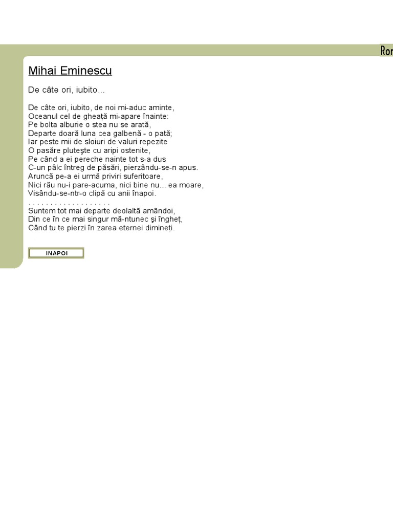 De Cate Ori Iubito De Mihai Eminescu Liceunet Ro