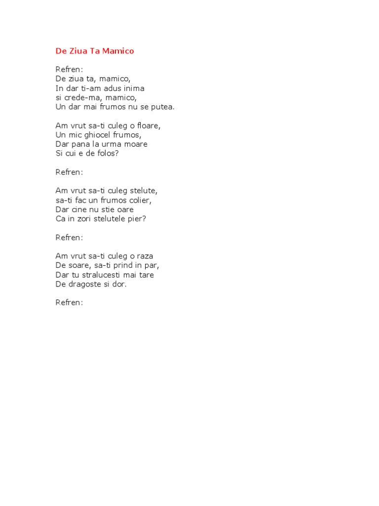 Versuri De Ziua Ta Mamico Versuri Lyrics