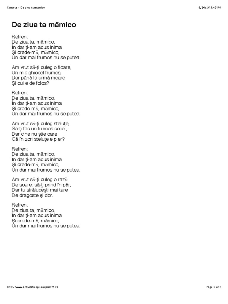 De Ziua Ta Mamico Cantece Pentru Copii