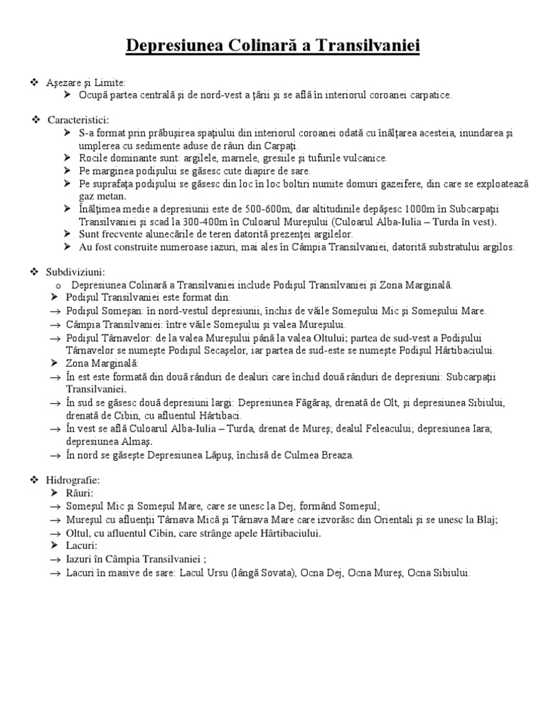 Harta Depresiunea Colinara A Transilvaniei Bacalaureat
