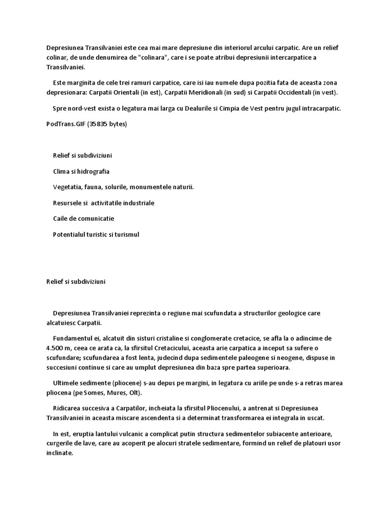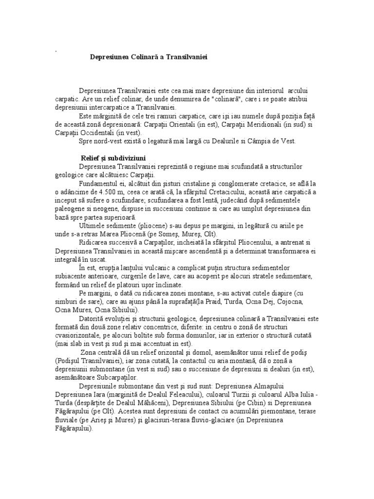Depresiunea Transilvaniei Este Cea Mai Mare Depresiune Din Interiorul Arcului Carpatic Docx