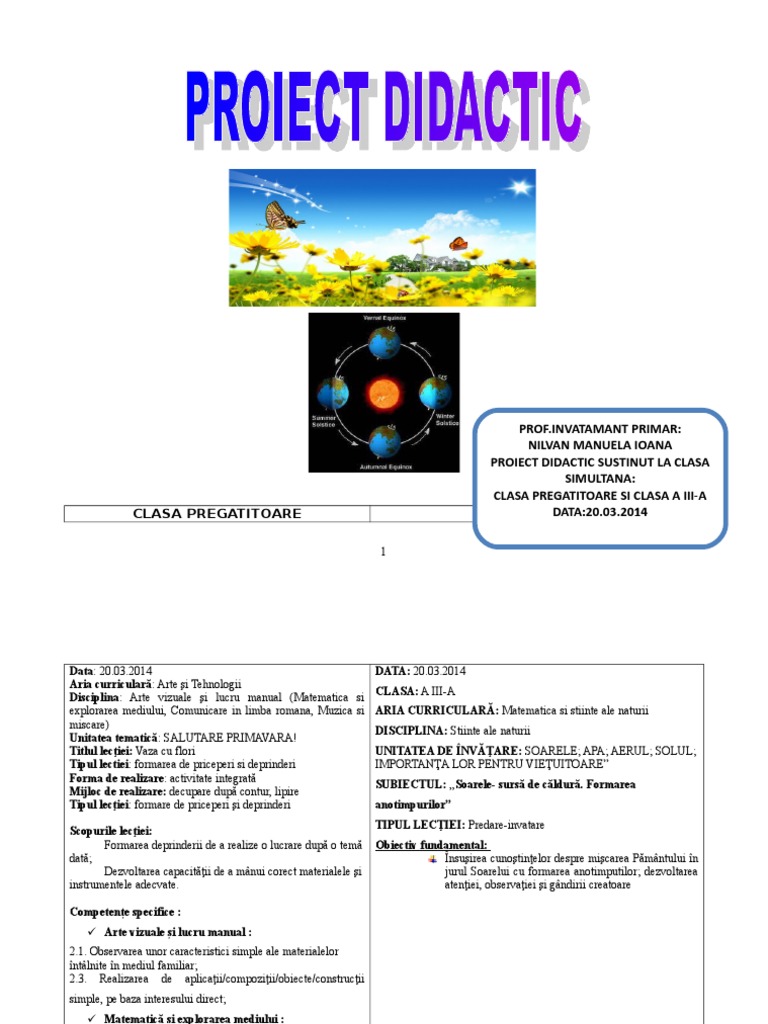 Proiect Didactic Clasa Pregatitoare Si A Iii A Avap Si Matematica