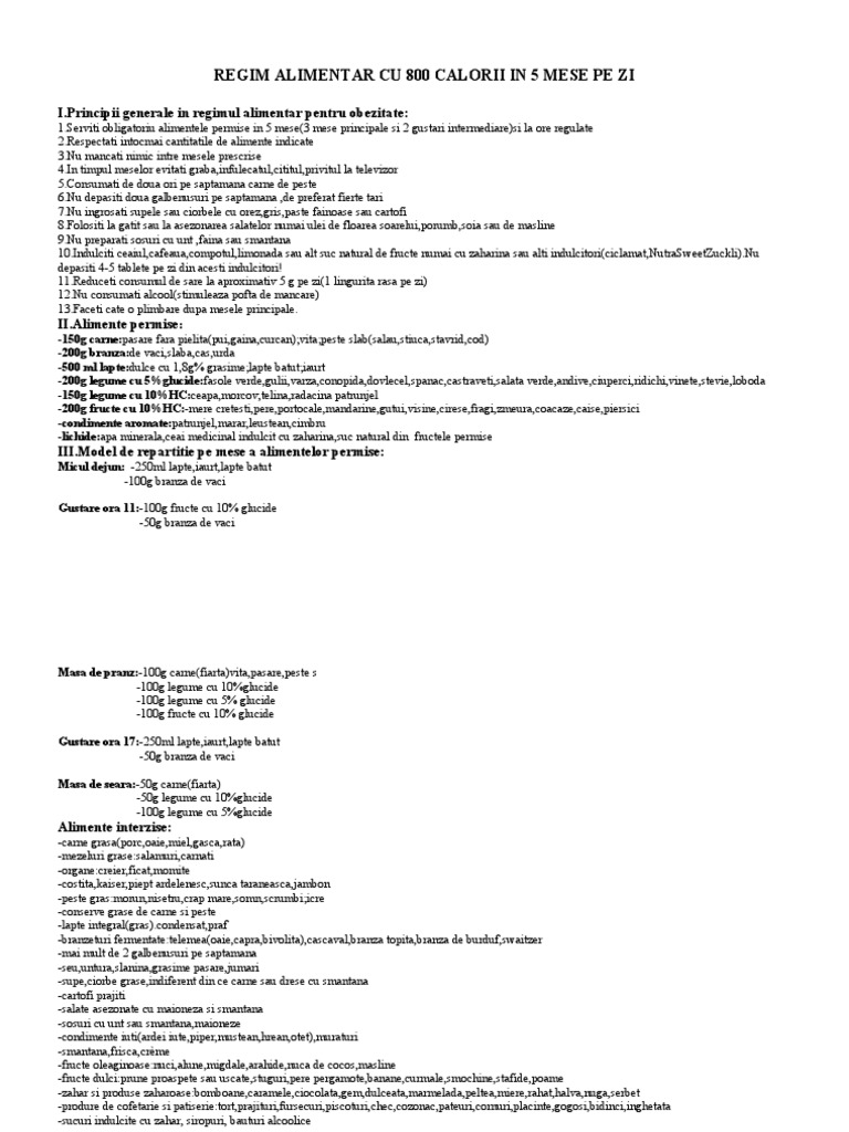 Regim Alimentar Cu 800 Calorii In 5 Mese Pe Zi