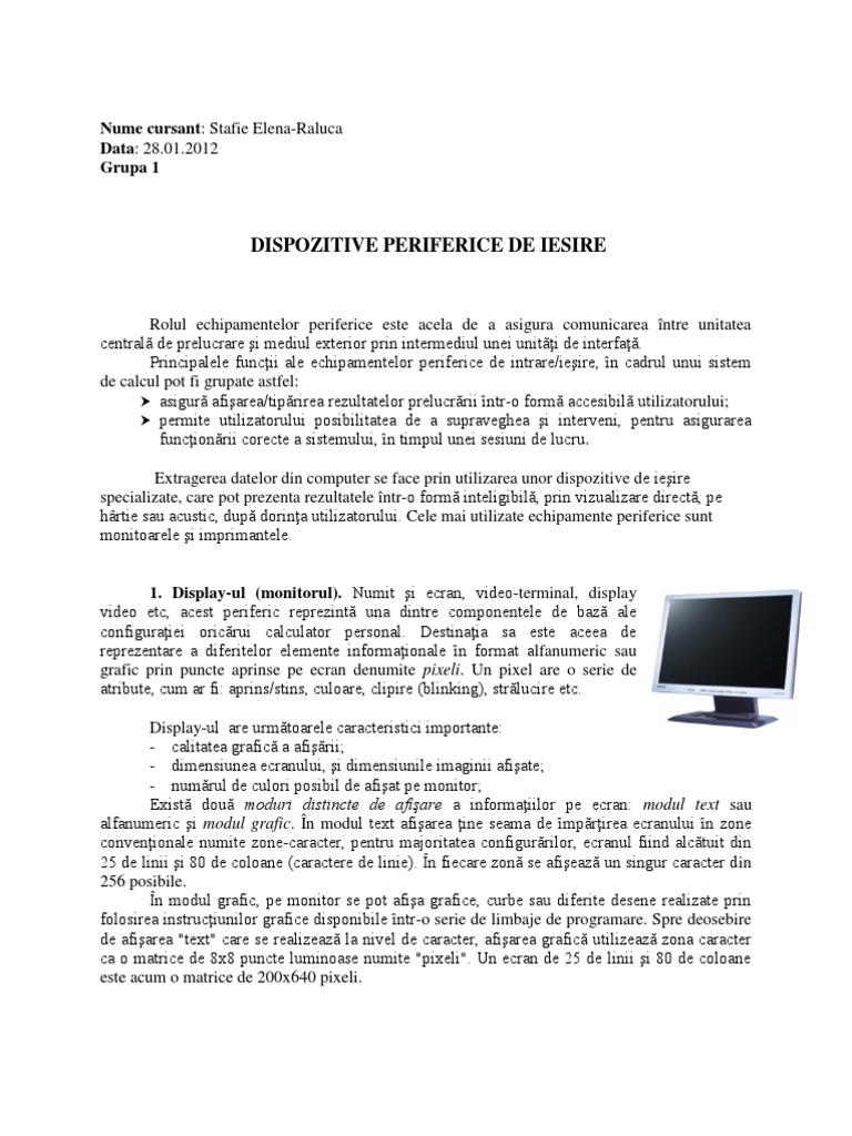 Dispozitive Periferice De Iesire Referat
