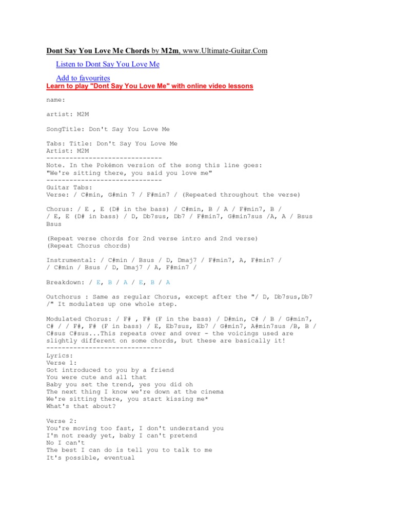 Dont Say You Love Me Chords By M2m Song Structure Vocal Music