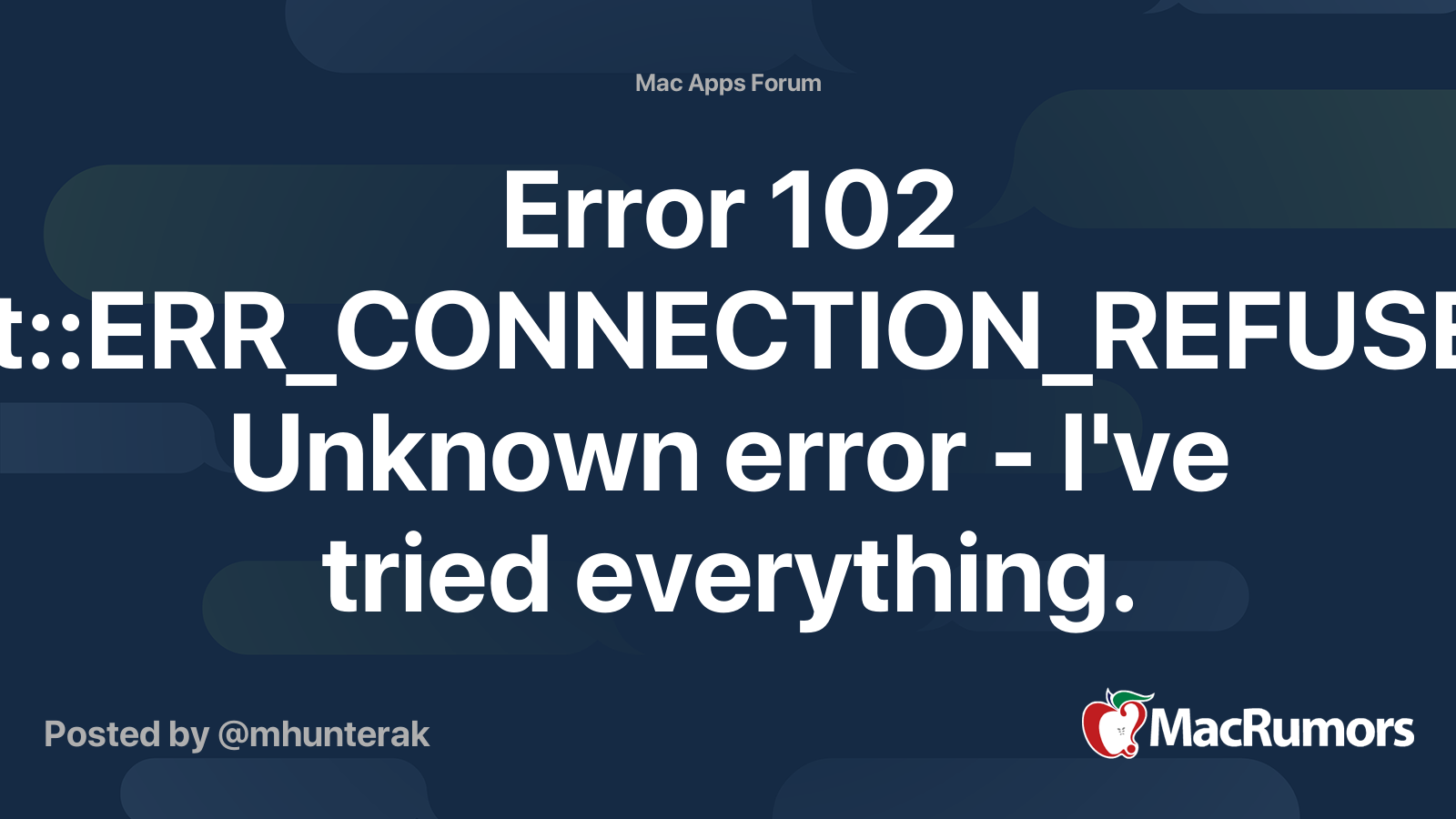 Error 102 Net Err Connection Refused Unknown Error I Ve Tried Everything Macrumors Forums
